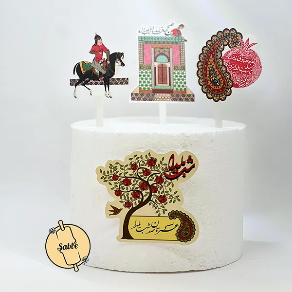ست تاپر 4 تکه ویژه شب یلدا، گزینه‌ ای هوشمندانه برای دیزاین سریع و با شکوه کیک‌ های یلدایی است. این مجموعه شامل طرح‌های اصیل مینیاتوری (اسب‌ سوار و عمارت)، نماد انار و خوشنویسی نستعلیق است که حال و هوای کاملا سنتی و نوستالژیک به کیک شما می‌بخشد. با استفاده از این تاپرها، بدون نیاز به مهارت‌های پیچیده دکوراتوری، در کمترین زمان به کیک‌های خانگی یا ویترینی خود جلوه‌ای حرفه‌ای و هنری بدهید.