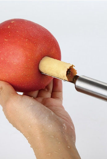 کافیست ابزار از بالا به صورت دورانی داخل میوه فرو کنید تا به طور کامل هسته خارج شود.
